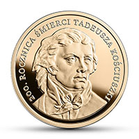 200. rocznica śmierci Tadeusza Kościuszki emisja dwóch monet kolekcjonerskich zaplanowana na 12 października 2017 roku, moneta srebrna 10 zł i złota 200 zł.