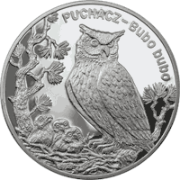 Nominał: 20 zł Zwierzęta świata - Puchacz