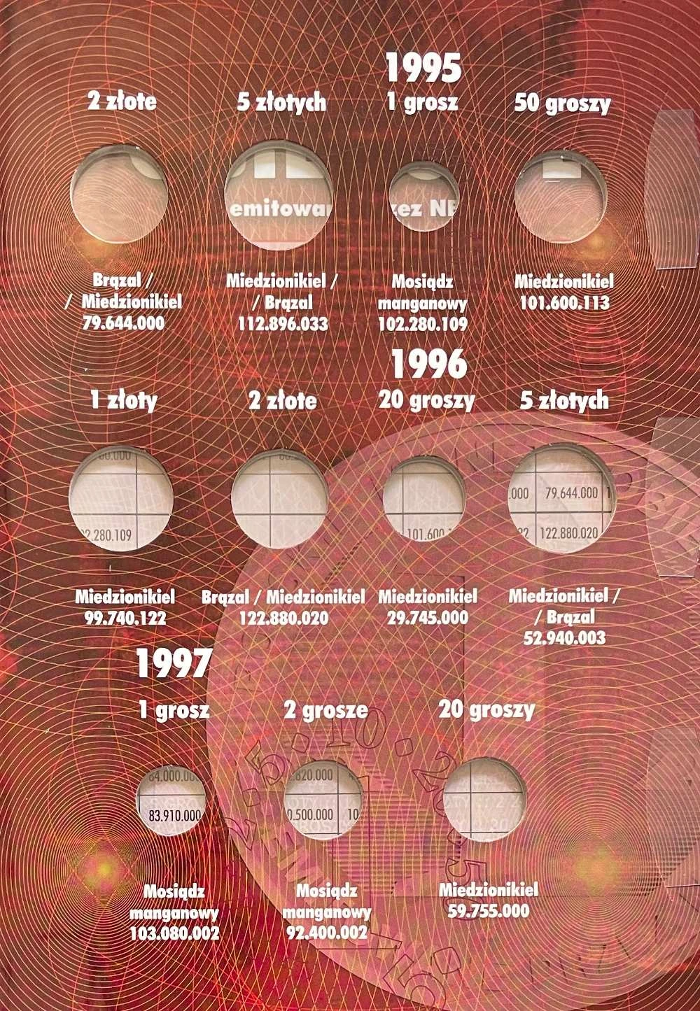 Album na monety obiegowe III RP II tom od 1995 r do 1997 r.