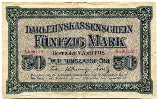 Banknot 50 Marek 1918 r. Kowno