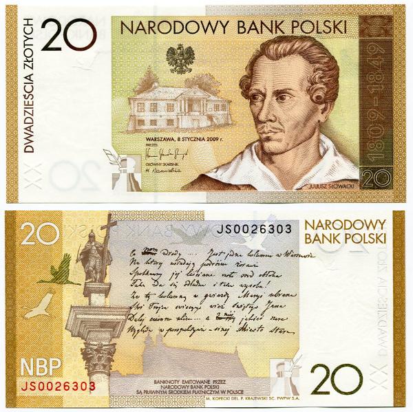 Banknot Kolekcjonerski 20 zł 200. rocznica urodzin Juliusza Słowackiego