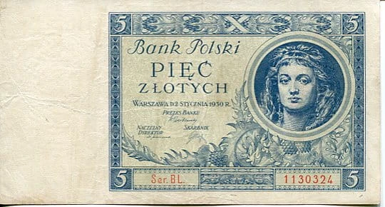 Nominał: Banknot 5 zł 1930 r.