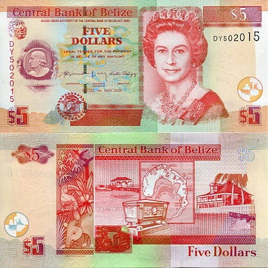 Belize 5 Dollars 2020 r. UNC