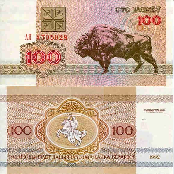 Białoruś 100 Rubli 1992 r. Żubr UNC