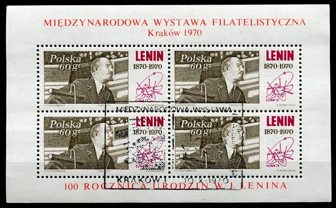 Znaczki 1970 r. 100. rocznica urodzin Włodzimierza Lenina. Arkusz z klejem. Stempel. Literatura: Fischer Ark. 1850.