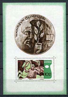 Znaczki 1970 r. X Sesja Międzynarodowej Akademii Olimpijskiej. Blok. Z klejem. Czysty. Literatura: Fischer Blok 37.