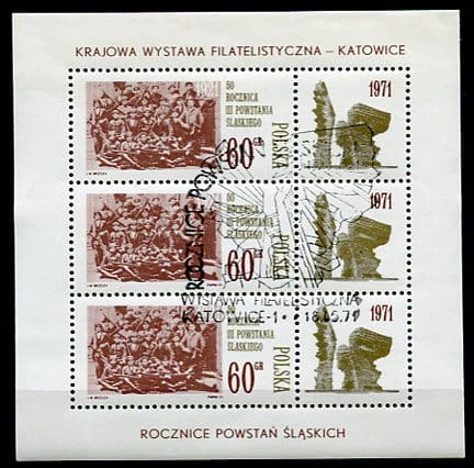 Znaczki 1971 r. Krajowa Wystawa Filatelistyczna w Katowicach. Blok. Z klejem. Stempel. Literatura: Fischer Blok 40.