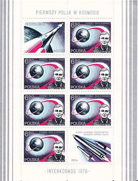 Znaczki 1978 r. Pierwszy Polak w kosmosie - Interkosmos. Bloczek. Czysty. Z klejem.