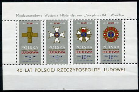 Znaczki 1984 r. 40 lat PRL. Bloczek z klejem. Czysty. Literatura: Fischer Blok 81.