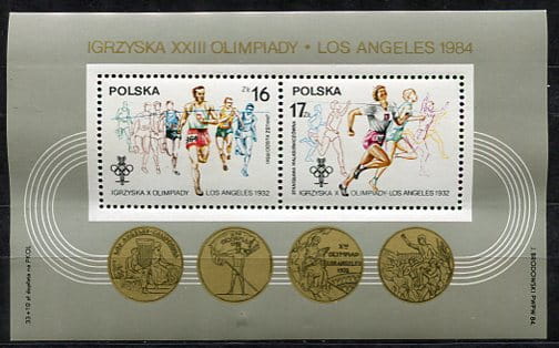 Znaczki 1984 r. Zimowe Igrzyska Olimpijskie w Sarajewie i Los Angeles. Bloczek z klejem. Literatura: Fischer Blok 80.
