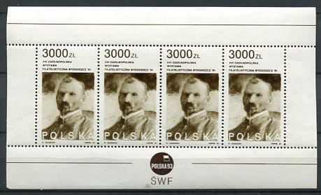 Znaczki 1991 r. Ogólnopolska wystawa Filatelistyczna w Bydgoszczy. Bloczek. Z klejem. Czysty. Literatura: Fischer Blok 100.