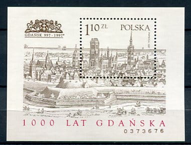 Znaczki 1997 r. 1000 lat Gdańska. Bloczek. Z klejem. Literatura: Fischer Blok 116B.