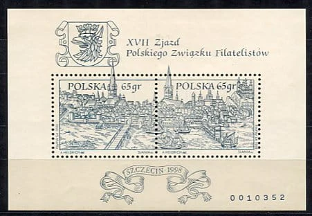 Znaczki 1998 r. XVII Zjazd PZF. Bloczek. Z klejem. Literatura: Fischer Blok 121b.