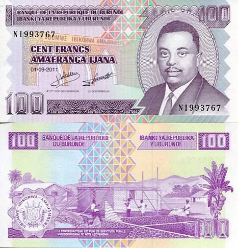 Burundi 100 Francs 2011 r. UNC