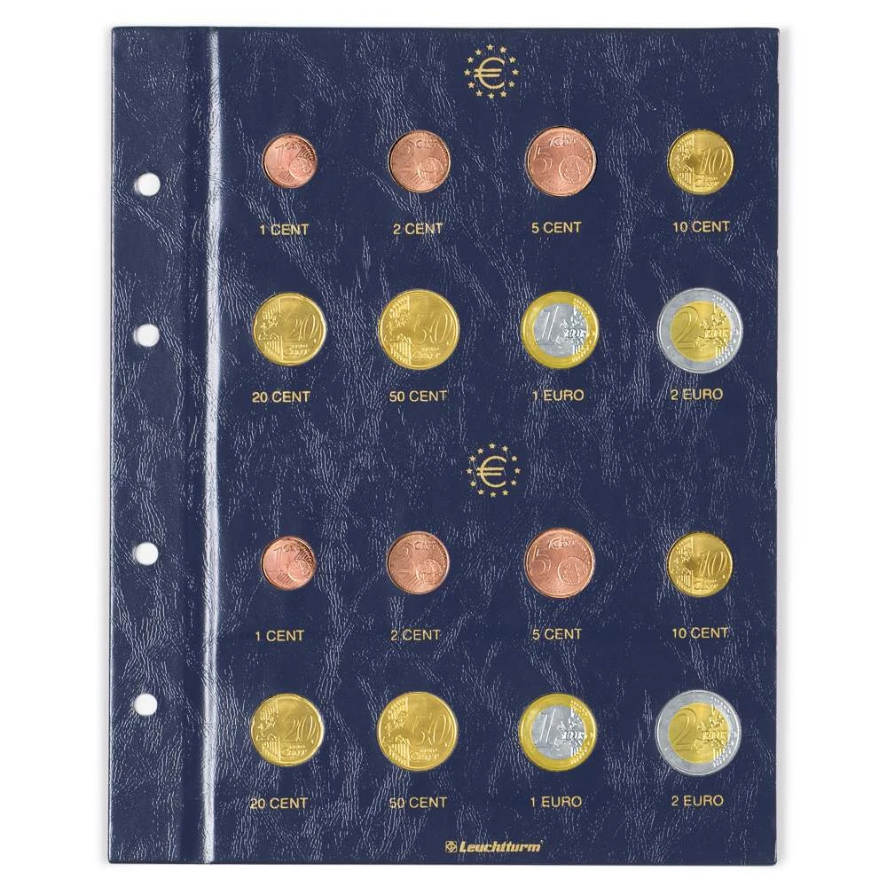Zestaw 2 kart na monety zestawy euro sety ( od 1 euro centa do 2 euro ) do albumu Vista lub Optima Leuchtturm. Zestaw 2 sztuk na 4 Euro Sety. Każda karta pomieści 16 monet. Wymiar karty 20 x 25 cm. Monety zabezpieczone obustronnie wysuwanymi paskami instrukcja na drugim zdjęciu.