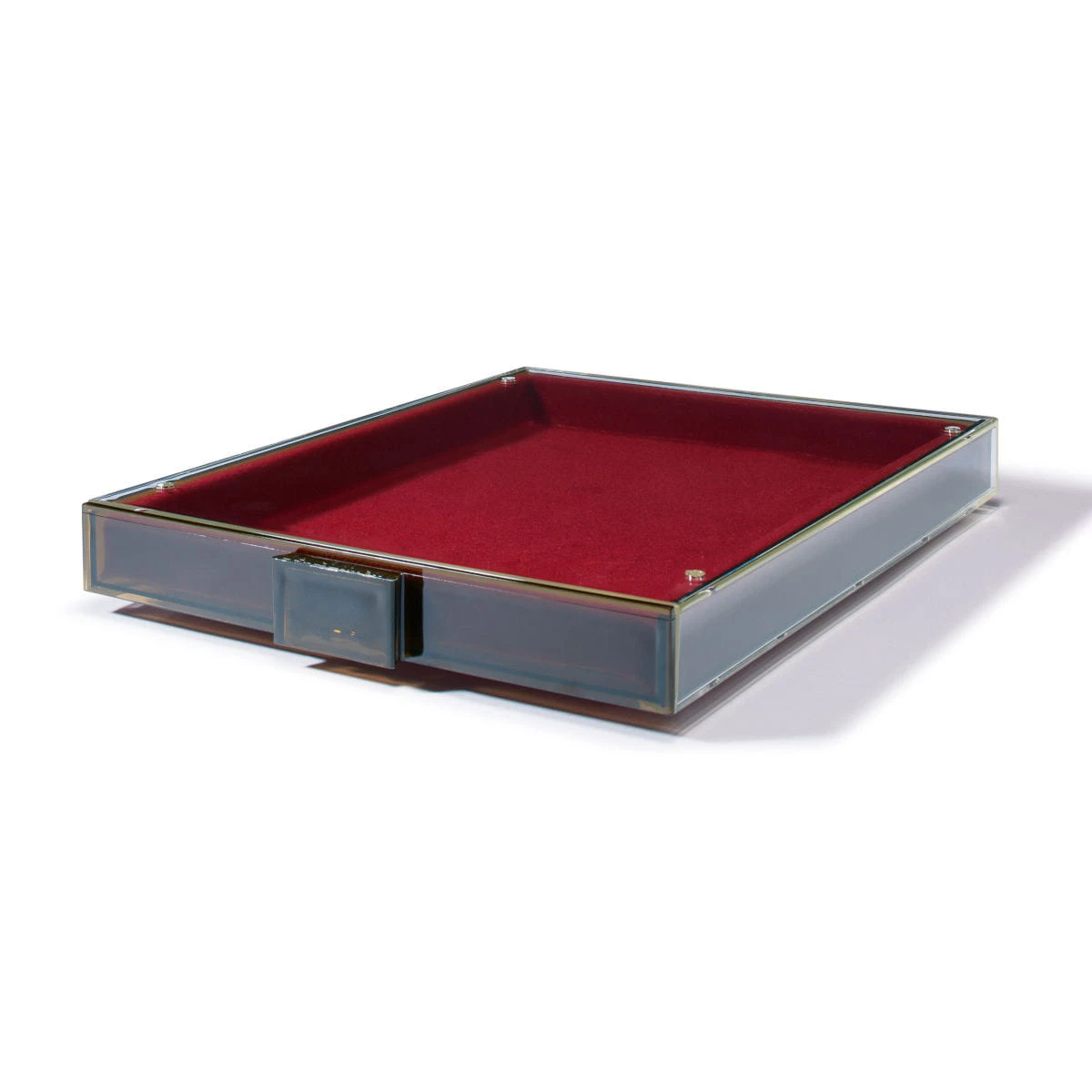 Kaseta leuchtturm MB CAPS XL Szuflada z jednym oknem na wysokie walory do 22 mm. Ciemnoczerwony wkład i dymiona szuflad Kasety MB doskonałe są do przechowywania w kuferkach dostępnych poniżej. Specjalny system nóżek i otworów umożliwia bezpieczne składania palet na sobie.