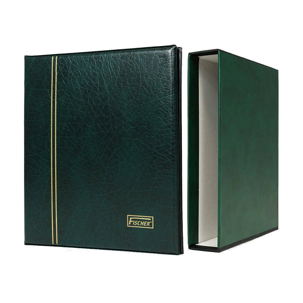 Klaser do pocztówek, koperty pierwszego dnia obiegu, FDC Fischer z etui w kolorze okładki zabezpieczającym walory przed kurzem. Zawiera 10 kart C2 przeźroczystych dzielonych na pół o wymiarze okienka 180 x 120 mm.