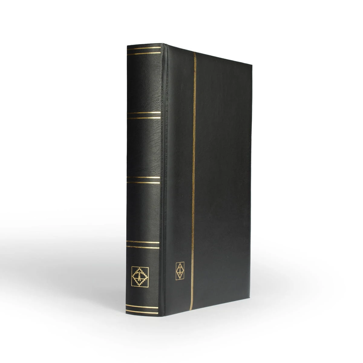 Elegancki klaser na znaczki formatu A4. Posiada 32 kart / 64 stron przedzielone podwójnymi pergaminowymi przekładkami pozwalającymi oddychać znaczkom na każdej stronie 9 przezroczystych pasków. Karty czarne. Klaser wykonany z wyściełanej gąbką okładki skóropodobnej. Wymiar klasera 230 x 305 mm. Kolor okładki prosimy wybrać z listy nad koszykiem. Klaser filatelistyczny wykonany przez znaną firmę Leuchtturm. Idealnie nadaje się na prezent dla kolekcjonera znaczków pocztowych.