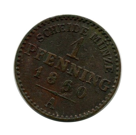 Prusy 1 Pfenning 1860 r. 360 Einen Thaler Stan jak na zdjęciu.