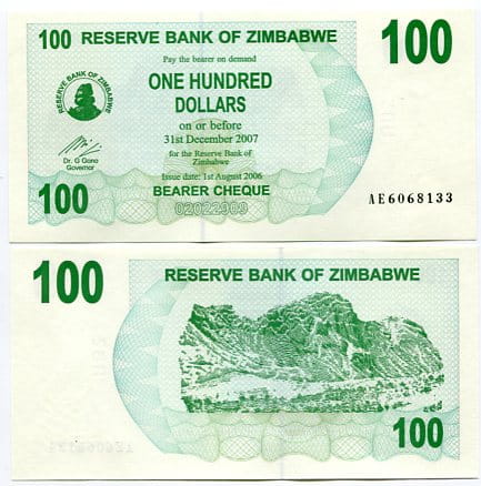 Zimbabwe 100 Dollar 2006 r. UNC